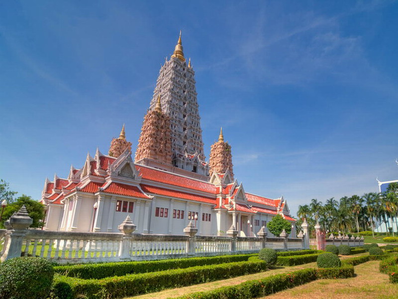 На его территории можно увидеть 22 восковые фигуры наиболее известных монахов в Таиланде, посетить Ступу с частицей Будды, и подняться по 200м ступенькам к пагоде с алтарем в виде отпечатков стоп Будды